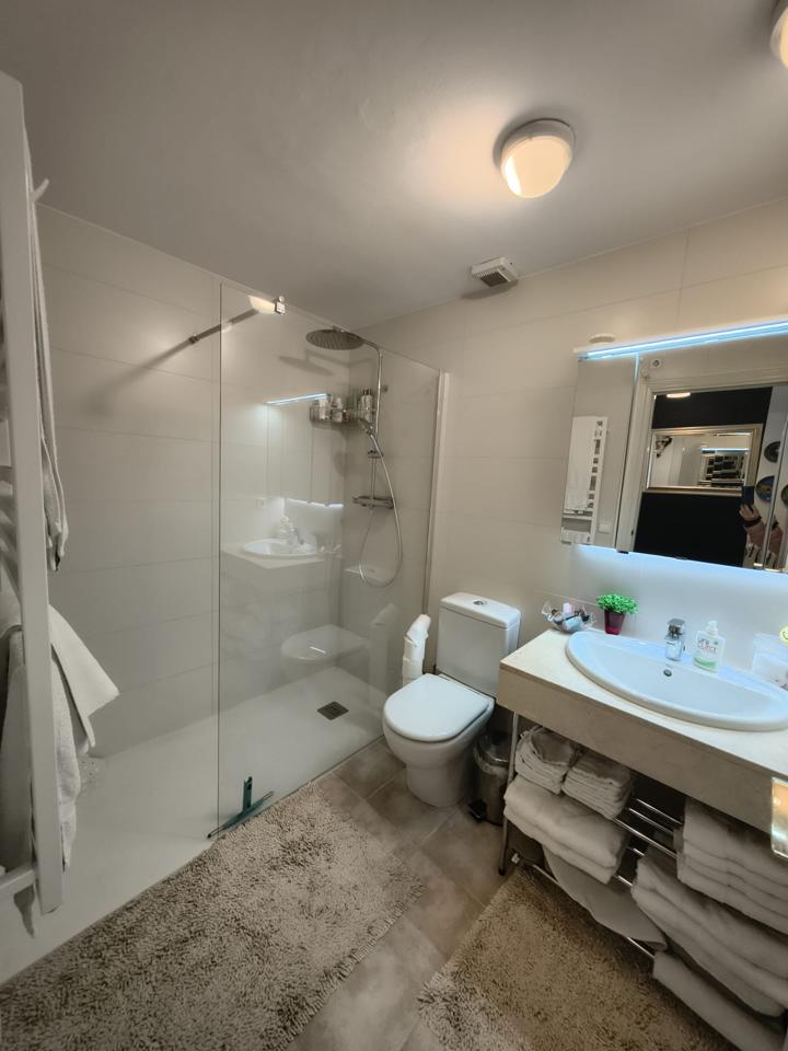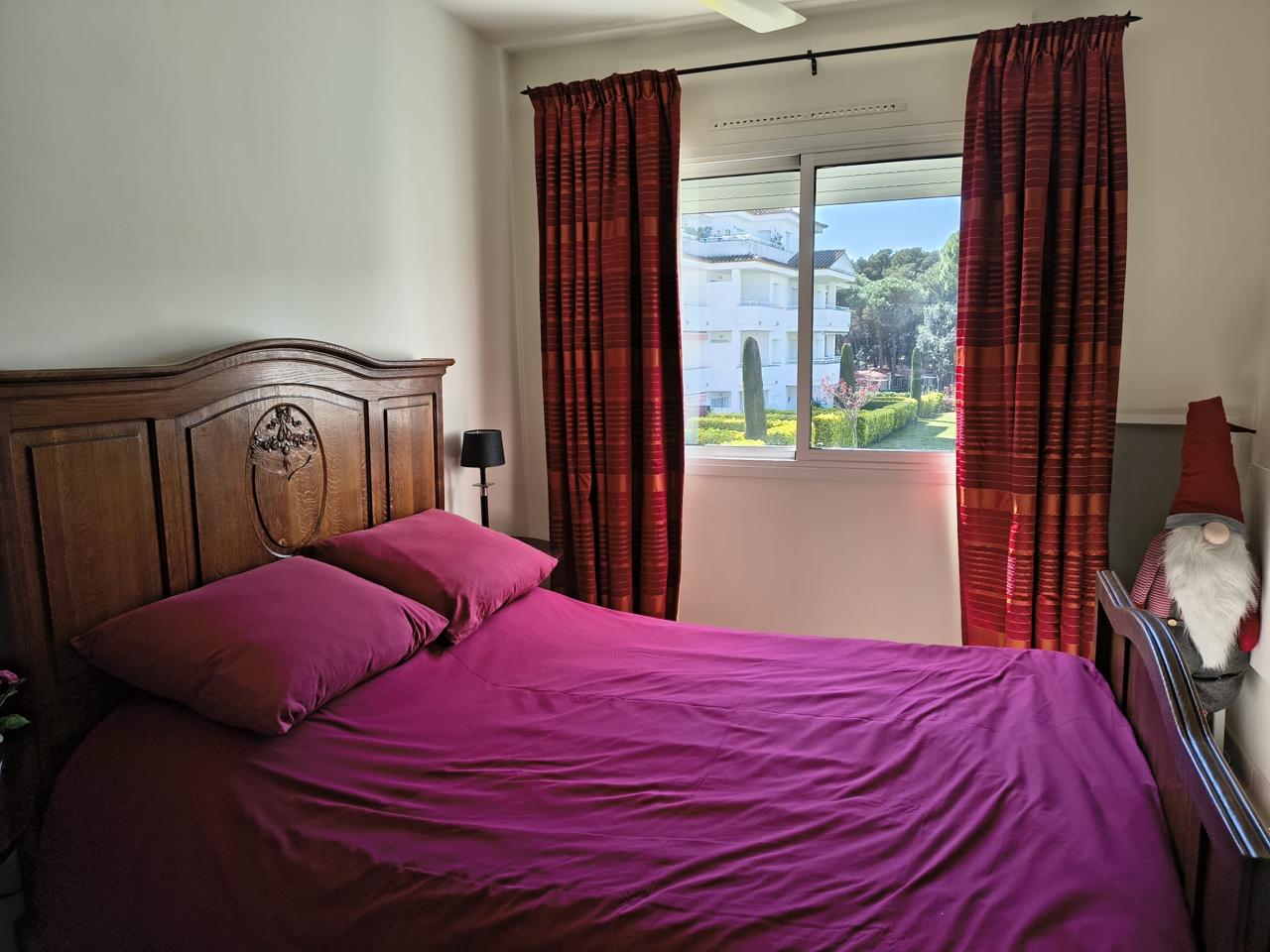 La propiedad cuenta con dos habitaciones dobles, incluyendo una habitación tipo suite con vestidor, ideal para disfrutar de tu privacidad. Además, la terraza ofrece vistas a las amplias zonas ajardinadas de la comunidad, donde podrás relajarte y disfrutar del aire libre. La piscina comunitaria es el lugar perfecto para refrescarte en los días calurosos.
